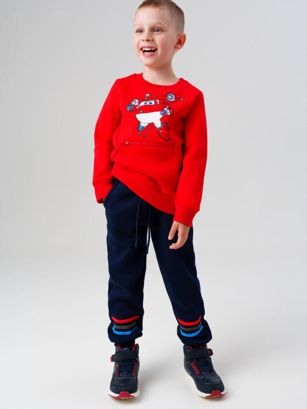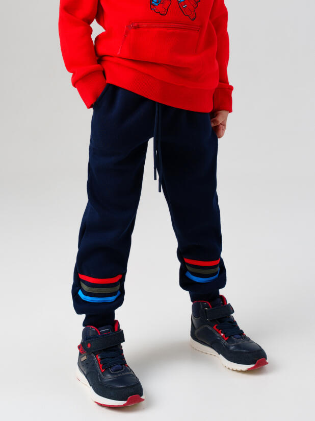 Брюки из футера с начёсом для мальчика от PlayToday идеально сочетаются с толстовками и свитшотами из этой же коллекции. Для спортивного образа можно добавить кроссовки, а для повседневного стиля — жилетку или парку.