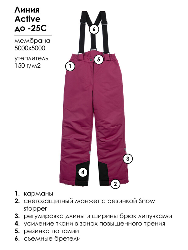 Зимние брюки для девочки подростка. Особенности модели: Линия Active; Температурный режим до -25С; мембрана 5000х5000;