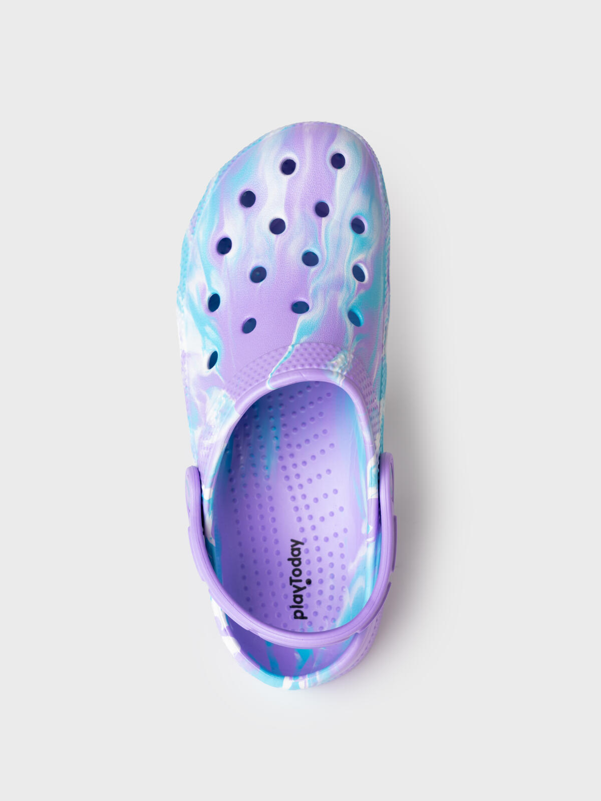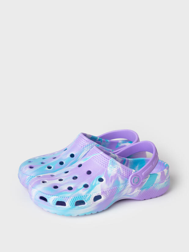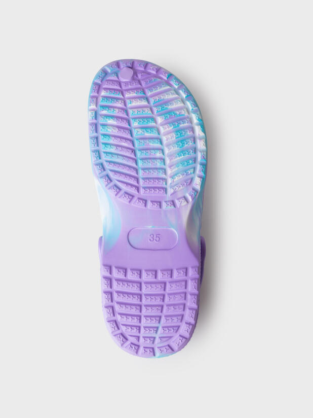 Сабо для девочки. Сабо из облегченного и прочного ЭВА с градиентным окрашиванием. Материал хорошо моется. Форма модели учитывает эргономику стопы. Модель имеет перекидной ремешок для лучшей фиксации обуви на ноге.